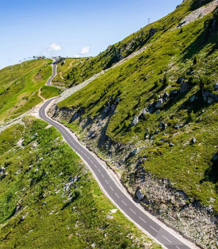 Von Brides les Bains geht diese Route über Courchevel le Praz und Meribel auf den Sommet des Lanches, 2.304 müM, die Bergstation eines Skilifts. Am Ortsende von Meribel verlassen wir den eigentlichen Pass und fahren auf den asphaltierte Radweg, der für den „normalen Strassenverkehr“ gesperrt ist.