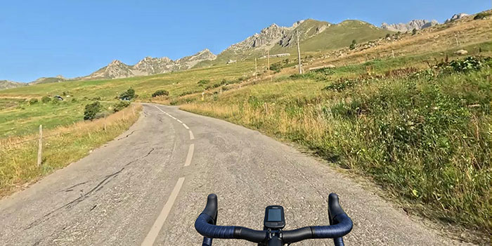1 km vor Celliers, 1.282 müM, wird es auf den letzten 12 km steiler, bis dann 2 km vor der Passhöhe in den letzten beiden von sechs Serpentinen nochmal zweistellige Steigungswerte bis 14% warten.